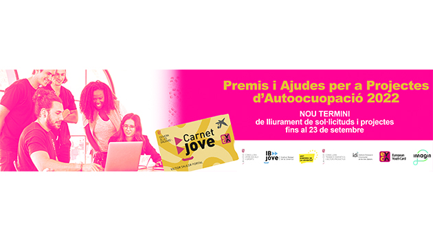 L’Institut Balear de la Joventut ha convocat els Premis i Ajudes Carnet Jove per a Projectes d’Autoocupació per a l’any 2022 amb la finalitat de contribuir a la millora de l’ocupabilitat dels joves. S’adreça als titulars del Carnet Jove de les Illes Balears d’entre 18 i 30 anys que vulguin impulsar projectes de negoci des de l’autoocupació.
