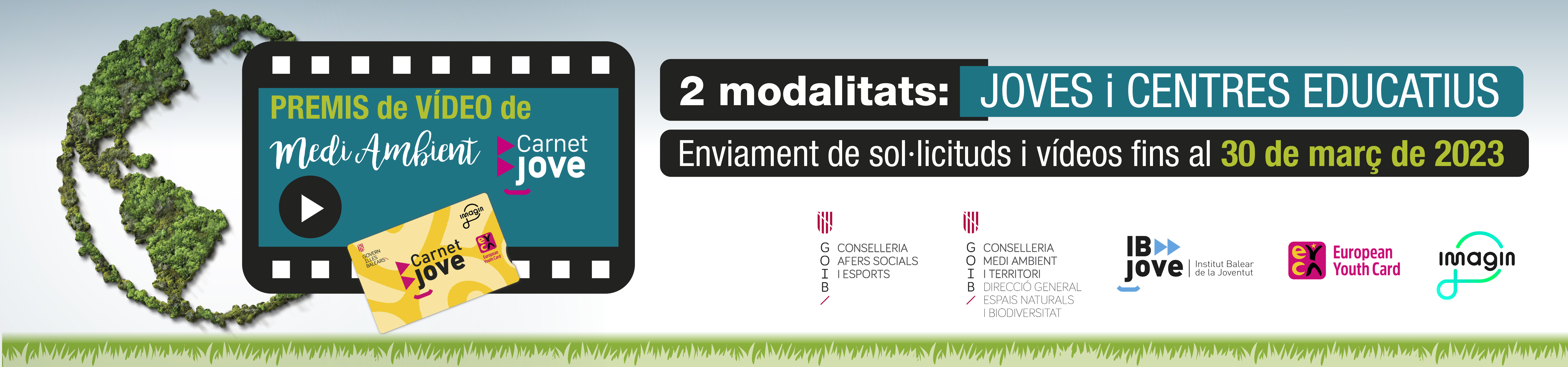 El Institut Balear de la Joventut ha convocado el Certamen de Vídeo de Medio Ambiente Carnet Jove 2023 con el fin principal de contribuir a aumentar el conocimiento y la concienciación respecto del medio ambiente en lo que respecta a la movilidad sostenible y la incentivación de medidas responsables.