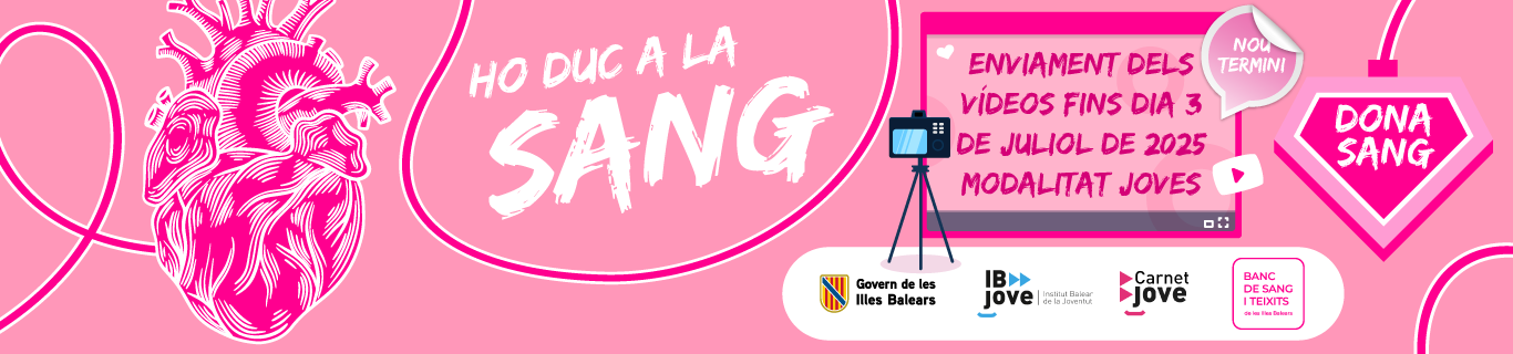 El Institut Balear de la Joventut ha convocado el Certamen de Vídeo “Ho duc a la sang” con la finalidad promover la donación de sangre y garantizar el relevo generacional del colectivo de las personas donantes de sangre en las Islas Baleares con la incorporación de los jóvenes.